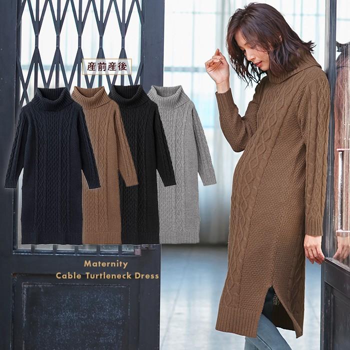 新品未使用正規品 授乳服 マタニティ 服 ワンピース ケーブルタートルネックワンピース 産前 産後 妊婦